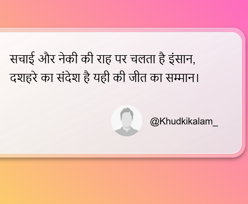 नमस्कार आपका स्वागत है हमारे इस दशहरा शायरी हिंदी के पेज पर, आपको इस कोट्स आर्टिकल में मिलेगी दसहरा पर शायरी और विजयादशमी सुभकामनाये सन्देश , इस के साथ रावण शायरी और रावण दहन पर शायरी लाइन हिंदी में भी आप पढ़ सकते है , हमने इस पर्व बुराई पर अच्छाई की जित पर शायरी लिखी जो दशहरे को और खाश बना देगा , राम और रावण पर शायरी आप इस पेज से कॉपी कर के अपनों के साथ साँझा कर सकते है