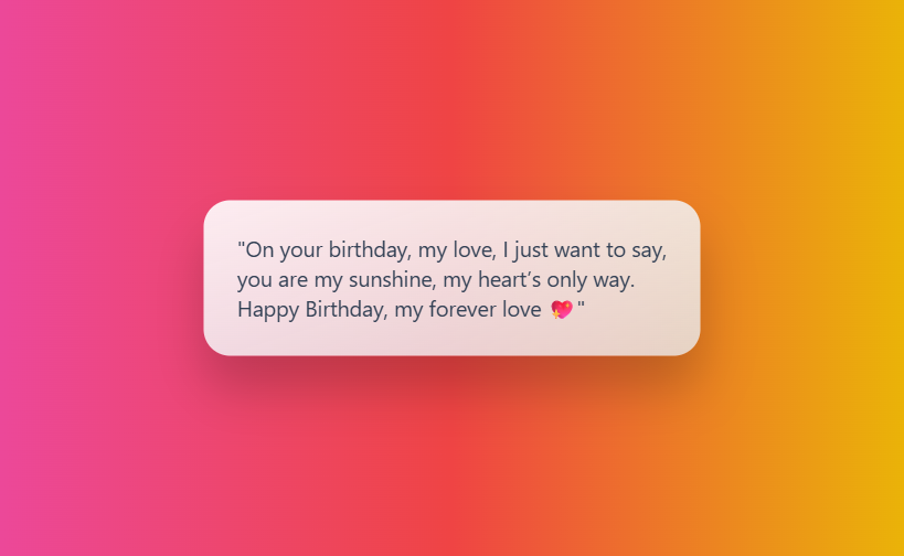 “मेरी हर खुशी तेरे मुस्कुराने से है, मेरी हर धड़कन तेरे साथ जुड़ जाने से है। जन्मदिन मुबारक मेरी ज़िंदगी ❤️”