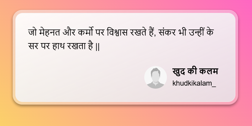जो मेहनत और कर्मो पर विश्वास रखते हैं, संकर भी उन्हीं के सर पर हाथ रखता है ||